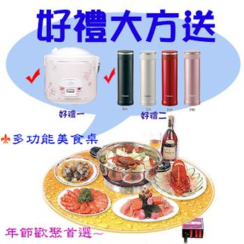 《好禮大方送》【E-TOP】手動旋轉美食桌 E-6700ETMALL東森購物網獨家款話題 現買現賺 買就送 電子鍋 保溫瓶 三段火力控制 任何鍋具不論鍋底凹凸 耐熱材質皆可使用 主商品 E TOP 手動旋轉美食桌 型號 E 6700 電壓 頻率 110V 60HZ 消耗功率 2