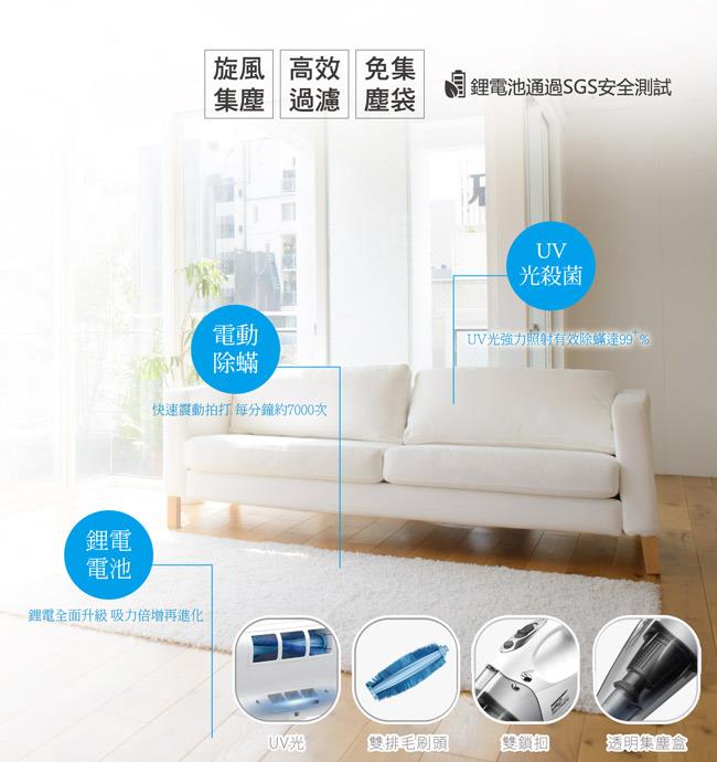 多功能配件組 清潔範圍廣  可水洗式高效空氣濾網 環保又貼心  雙重鎖扣設計 安全 安心又牢固 商品名稱 CHIMEI奇美無線多功能UV除蹣吸塵器VC HB4LH0品牌 CHIMEI奇美種類 除" />