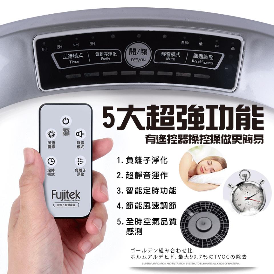 防護型五重淨化濾網 除菌無味 附遙控器 操作無距離 多種模式選擇 定時開關 負離子強弱選擇 商品名稱 Fujitek富士電通負離子空氣清淨機FT AP03品牌 Fujitek富士電通型號 F
