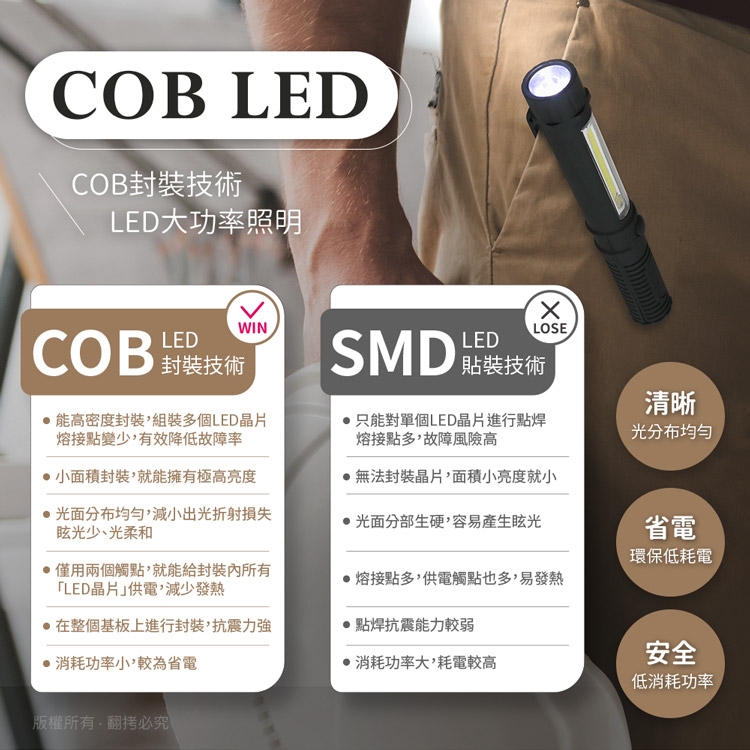 電池式 LED COB 磁吸多功能應急手電筒(LI-31)ETMALL東森購物網好禮必備 採用COB LED大功率照明 光源均勻 照明更亮 更清晰 前燈 側燈多用途照明 適用各場所 商品名稱 電池式LEDCOB磁吸多功能應急手電筒 LI 31 品牌 aibo型號 USB LI 31類別 隨身