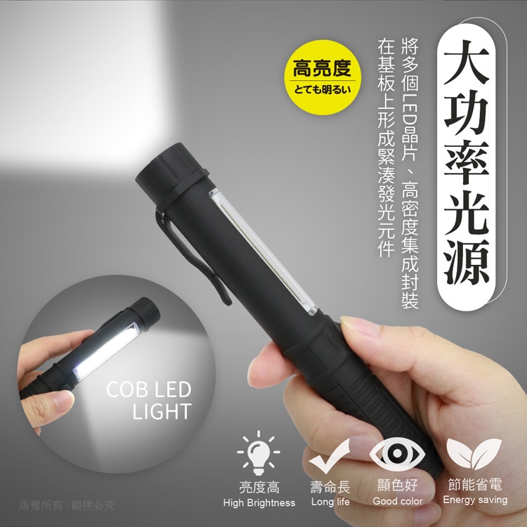 電池式 LED COB 磁吸多功能應急手電筒(LI-31)
