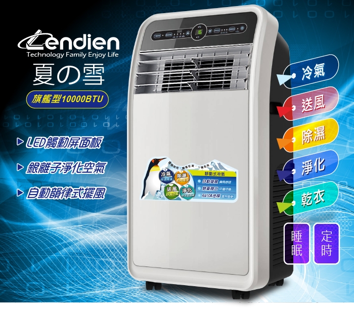 LENDIEN夏之雪 10000BTU頂級旗艦版多功能移動式冷氣(LD-3160CH●加贈遙控霧化冷風機●)ETMALL東森購物網秒殺出清 CP值超高