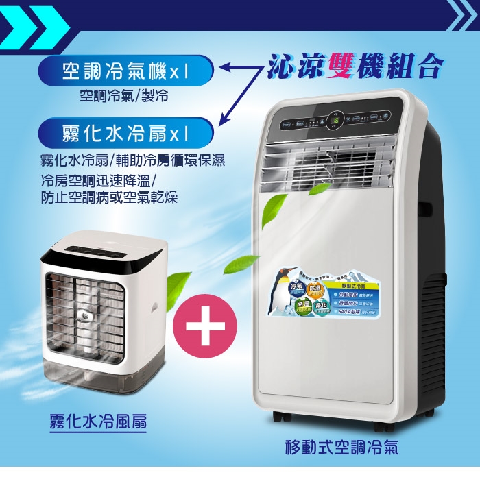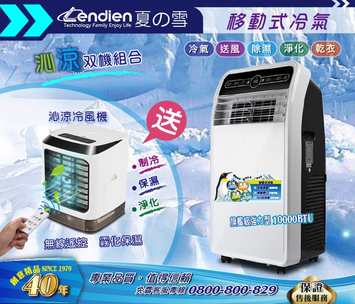 冷氣機 水冷扇 沁涼雙機組合 冷氣 除濕 涼風 過濾 空氣清新 廣角舒送 獨立除濕 商品名稱 LENDIEN夏之雪10000BTU頂級旗艦版多功能移動式冷氣 LD 3160CH 加贈遙控霧化冷風
