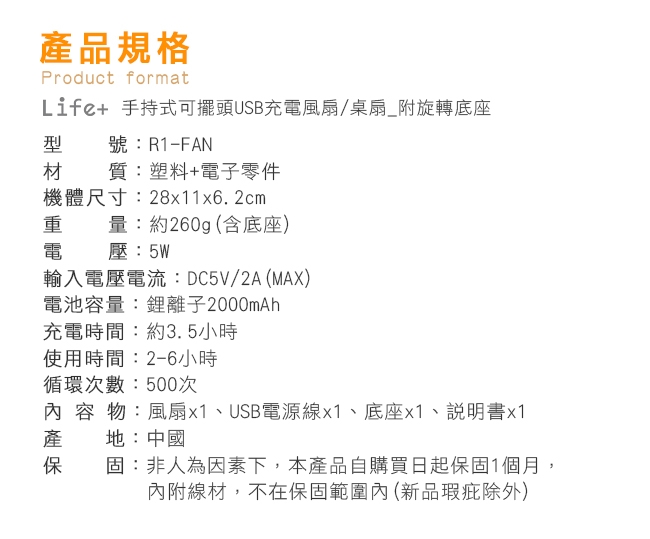 Life Plus 手持式可擺頭USB充電風扇/桌扇_附旋轉底座 (白色)ETMALL東森購物網新款 心得分享