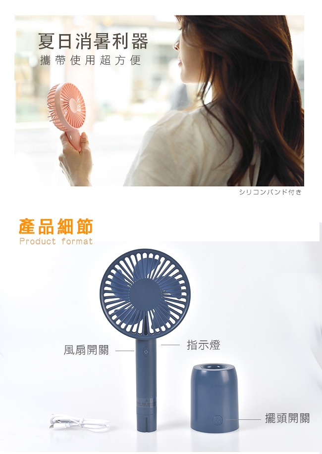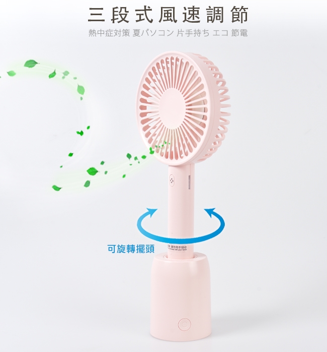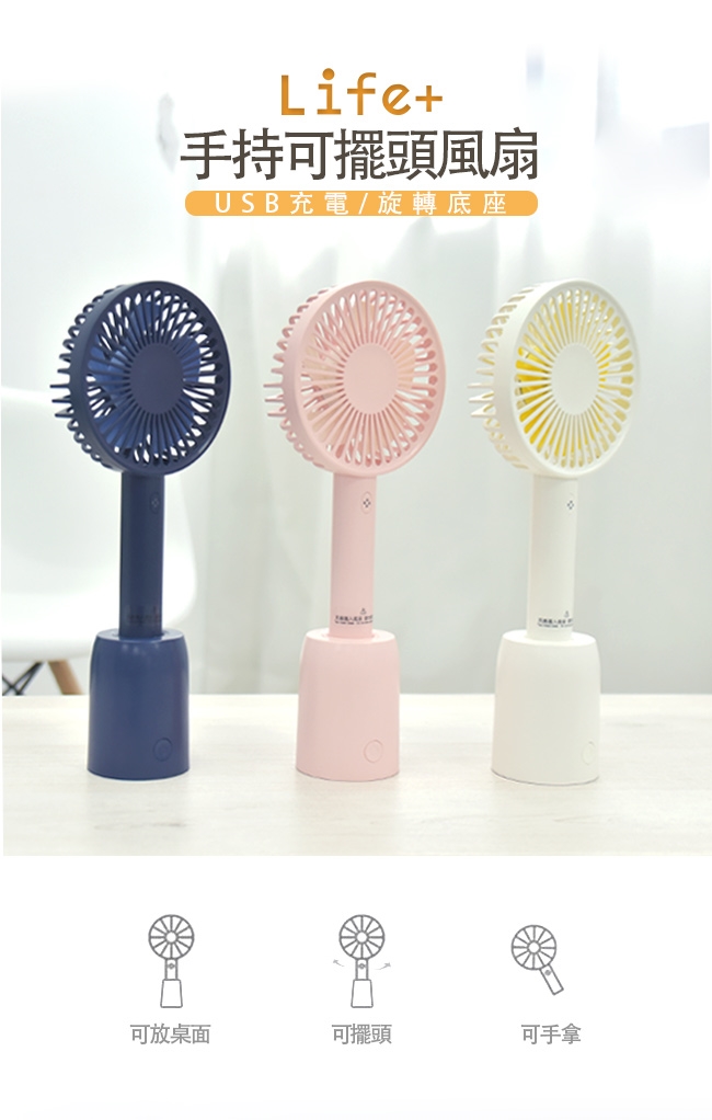 【Life Plus】手持式可擺頭USB充電風扇/桌扇_附旋轉底座