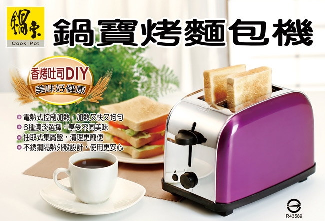 6種濃淡選擇 抽取式集屑盤 隔熱外殼設計 品牌 鍋寶型號 OV 580 D種類 烤麵包機產地 中國電壓 110V頻率 60Hz消耗功率 外包裝尺寸 275長 170寬 184高mm本體尺寸 248長 180