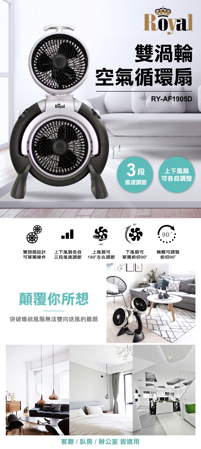 今日下殺↘Royal 雙渦輪空氣循環扇RY-AF1905DETMALL東森購物網評鑑開箱 好用推薦