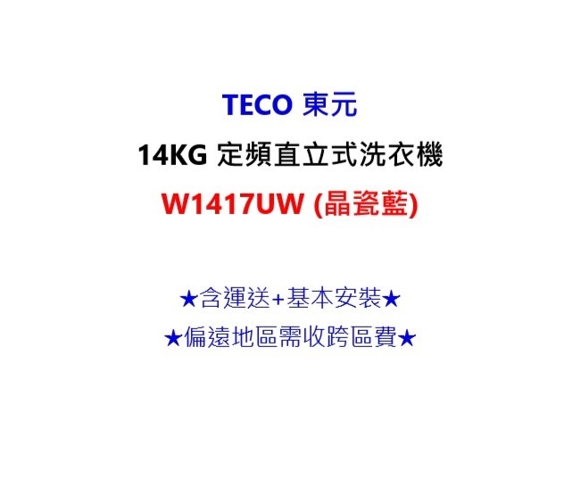 TECO東元 14KG 定頻直立式洗衣機 W1417UW(晶瓷藍)ETMALL東森購物網超便宜