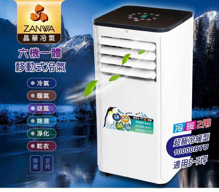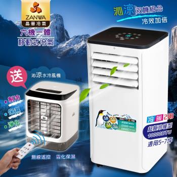 【ZANWA晶華】5-7坪六機一體 超極冷暖型 移動式冷氣機10000BTU(ZW-1360CH加贈遙控霧化冷風機)