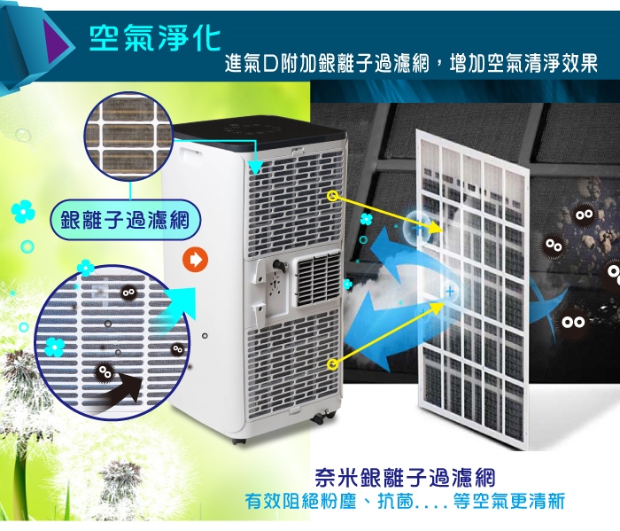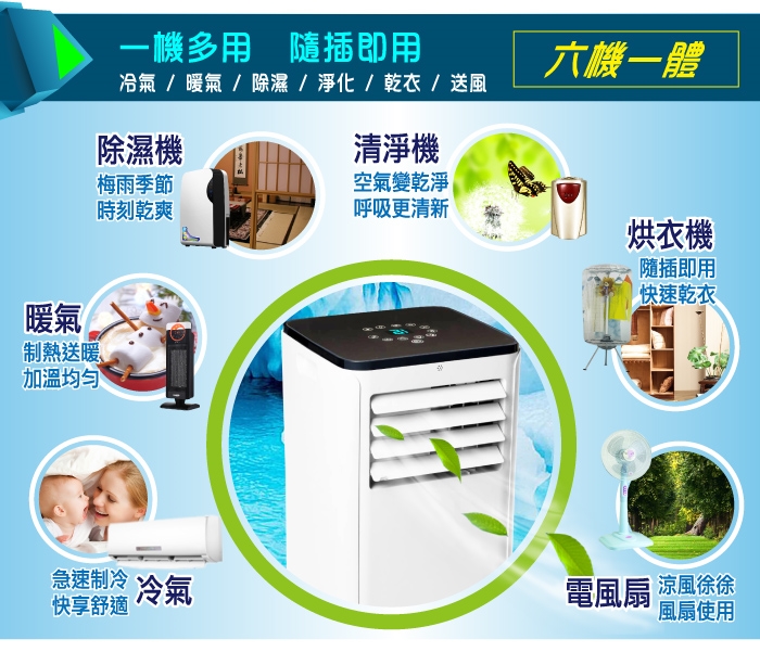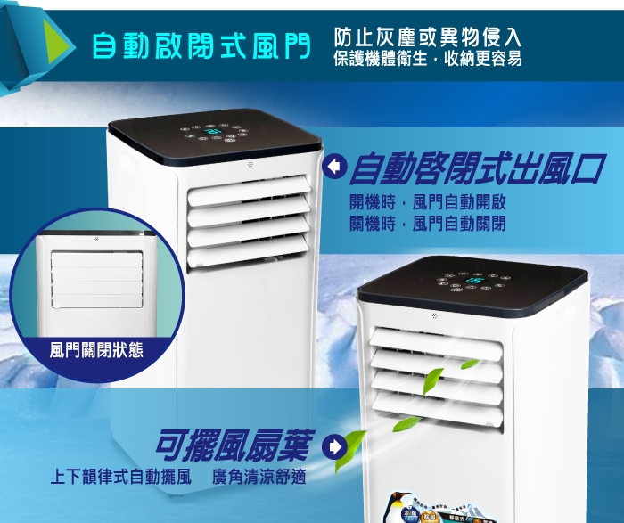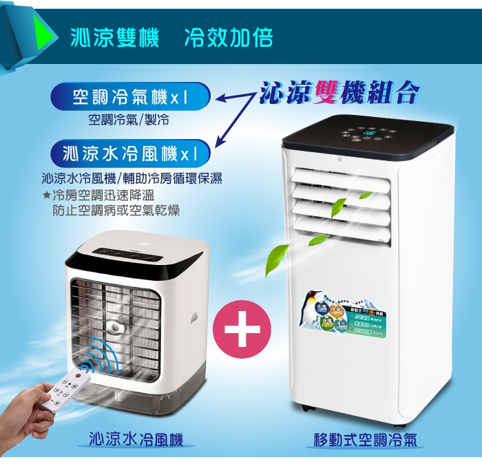 冷氣機 水冷扇 沁涼雙機組合 冷氣 暖氣 除濕 涼風 淨化 上下自動擺風 廣角舒送 銀離子空氣濾網 抑菌除臭 高效除濕能力 高達30L 天 自動啟閉風口 防塵易收納 商品名" />