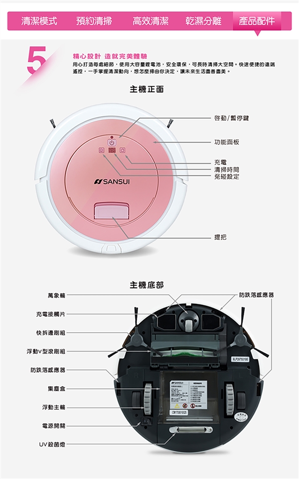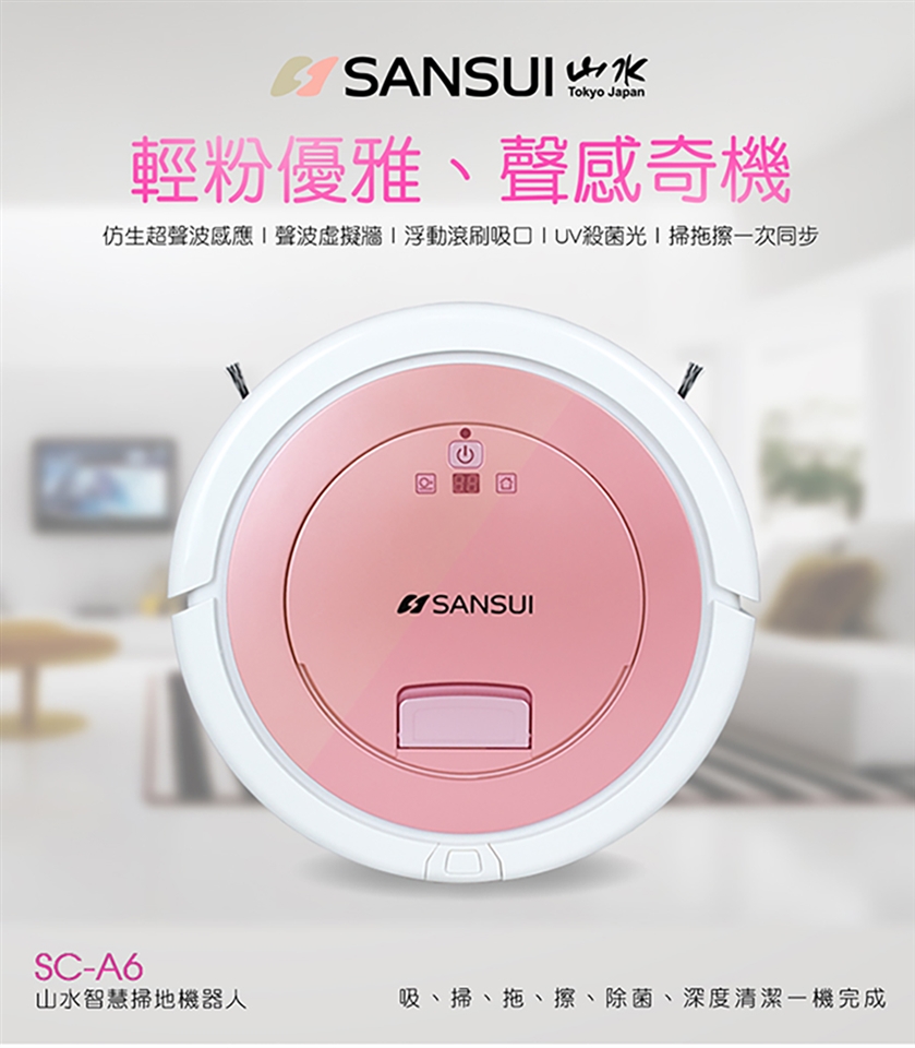 UV殺菌燈 自動回充 獨立水箱 吸 掃 拖 擦 一次完成 商品名稱 SANSUI山水UV殺菌燈智慧掃地機器人附虛擬牆SC A6品牌 SANSUI山水種類 掃地機型號 SC A6功能 防跌落感應 乾" />